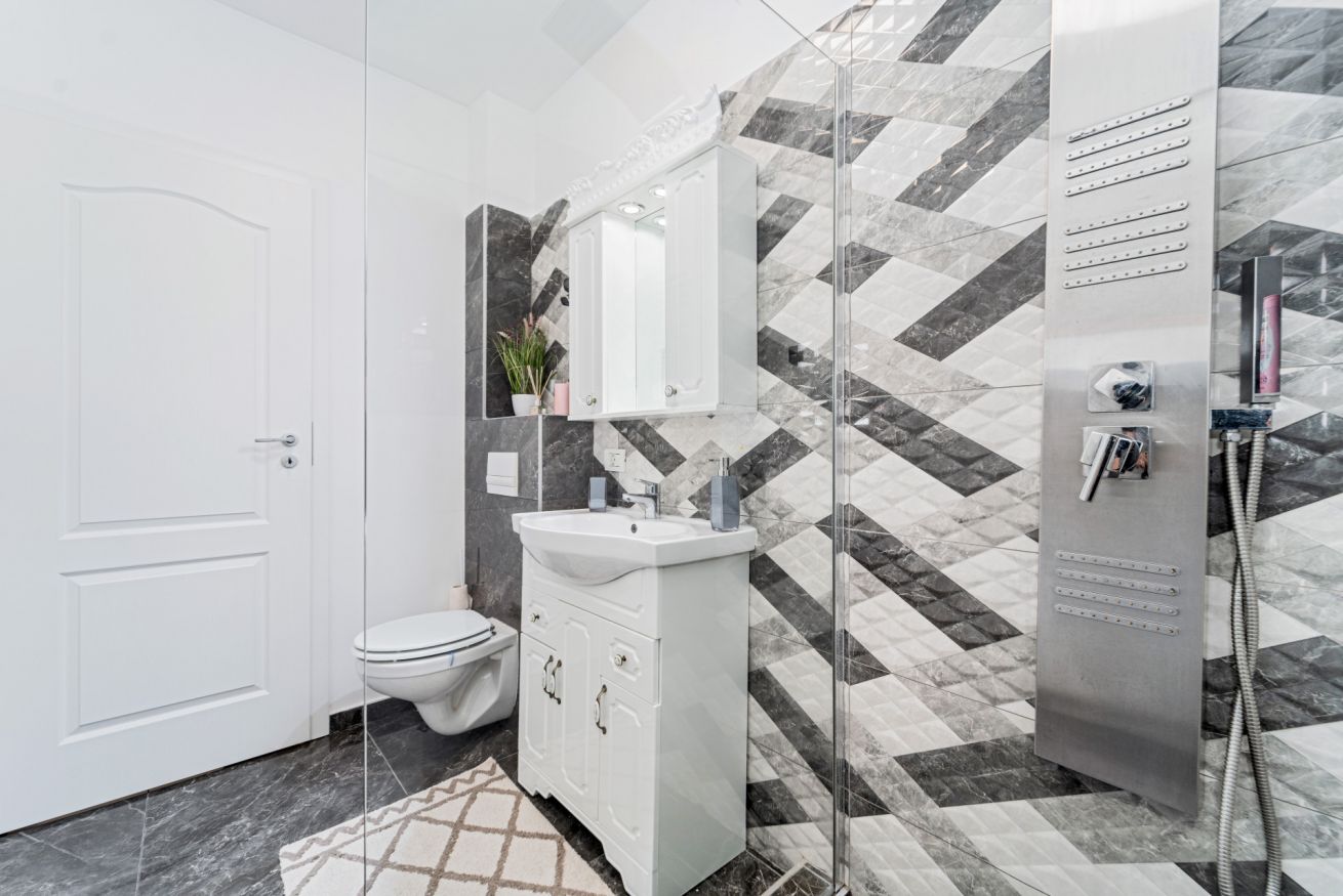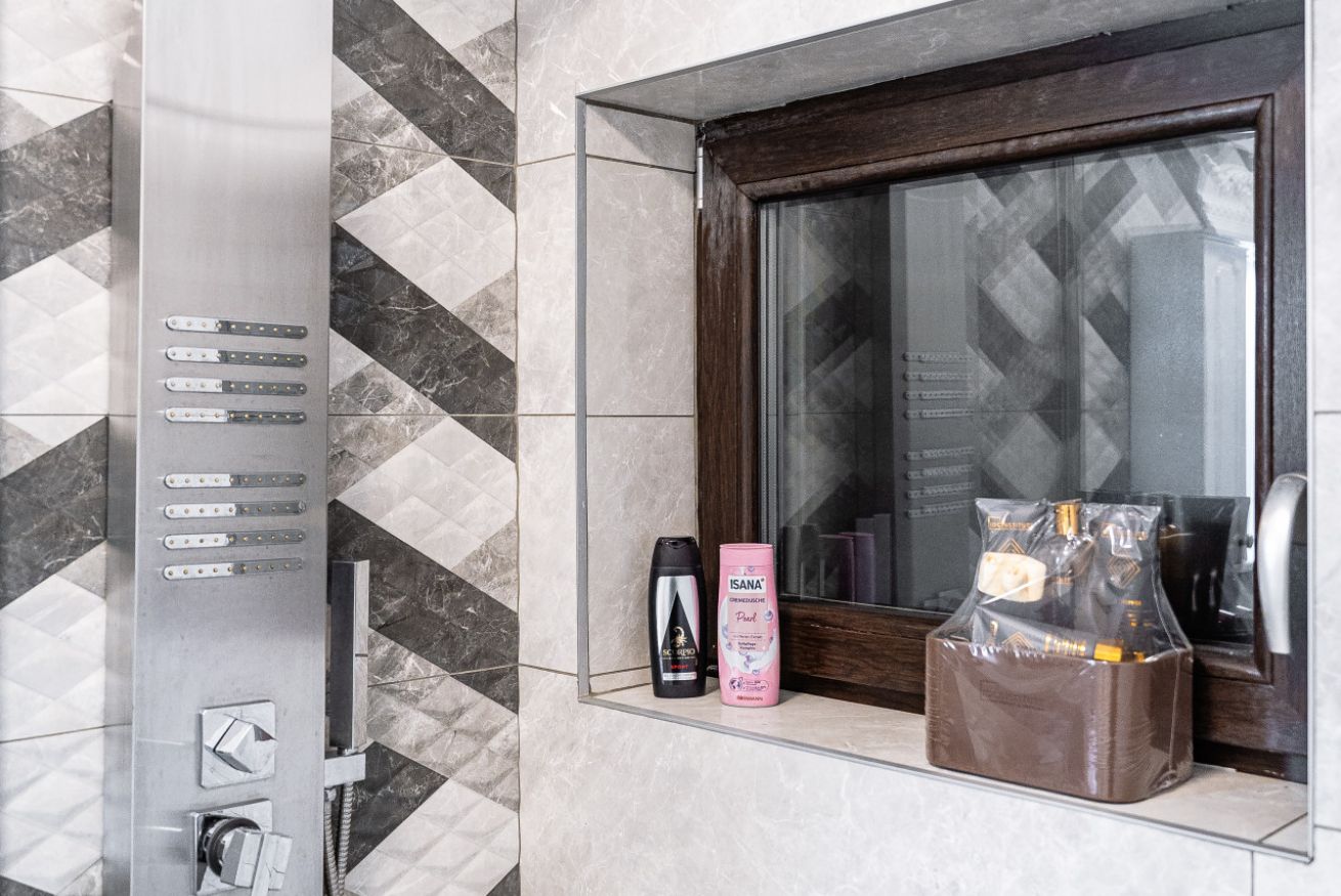 - Oaspeții se vor bucura de baia spațioasă, elegant și amenajată cu toate dotările necesare, precum și utilată cu produse de calitate.