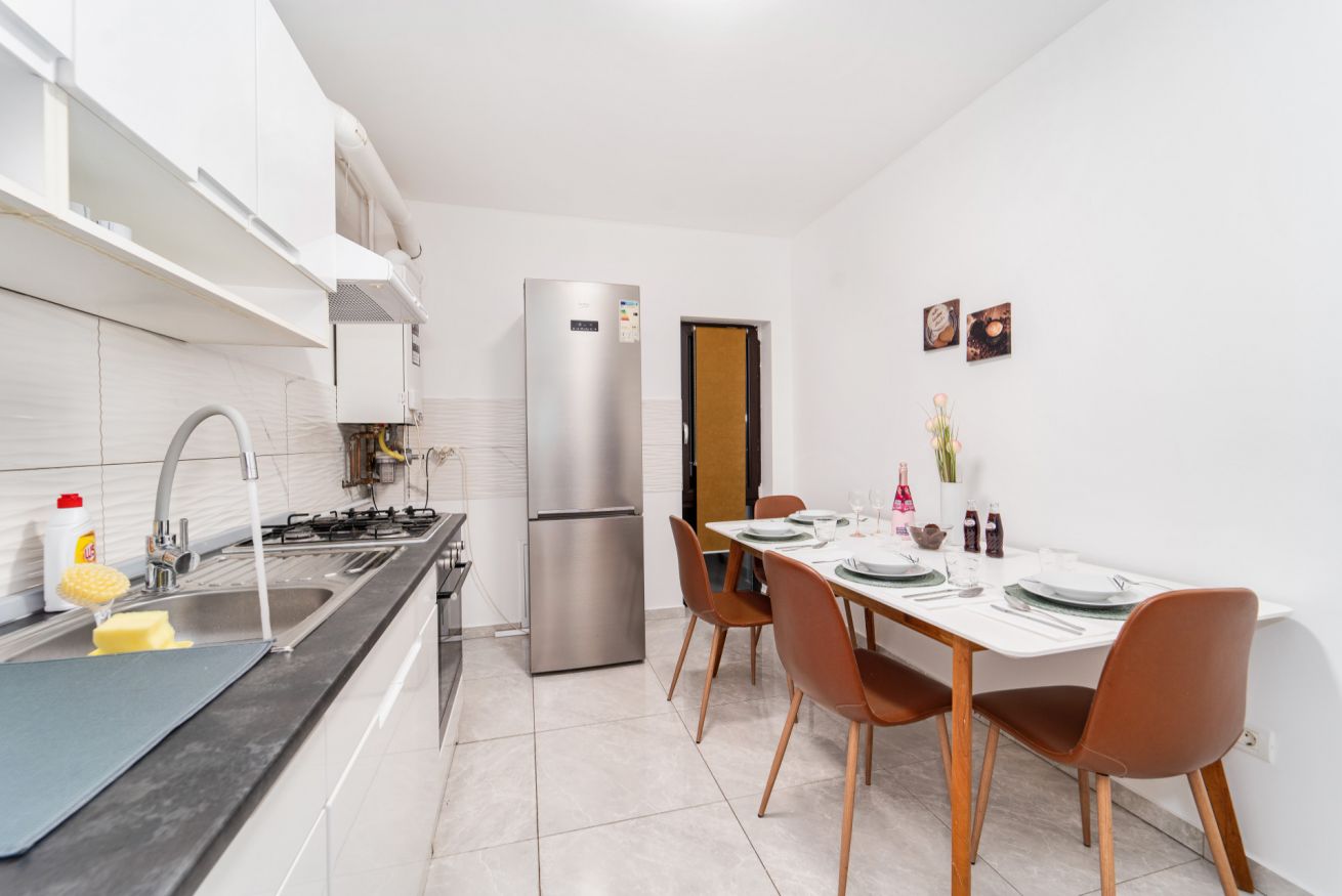 - Bucătărie complet utilată: Gătește cu bucurie într-o bucătărie utilată cu toate facilitățile necesare.